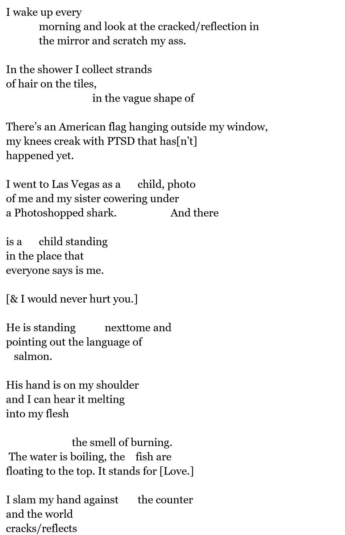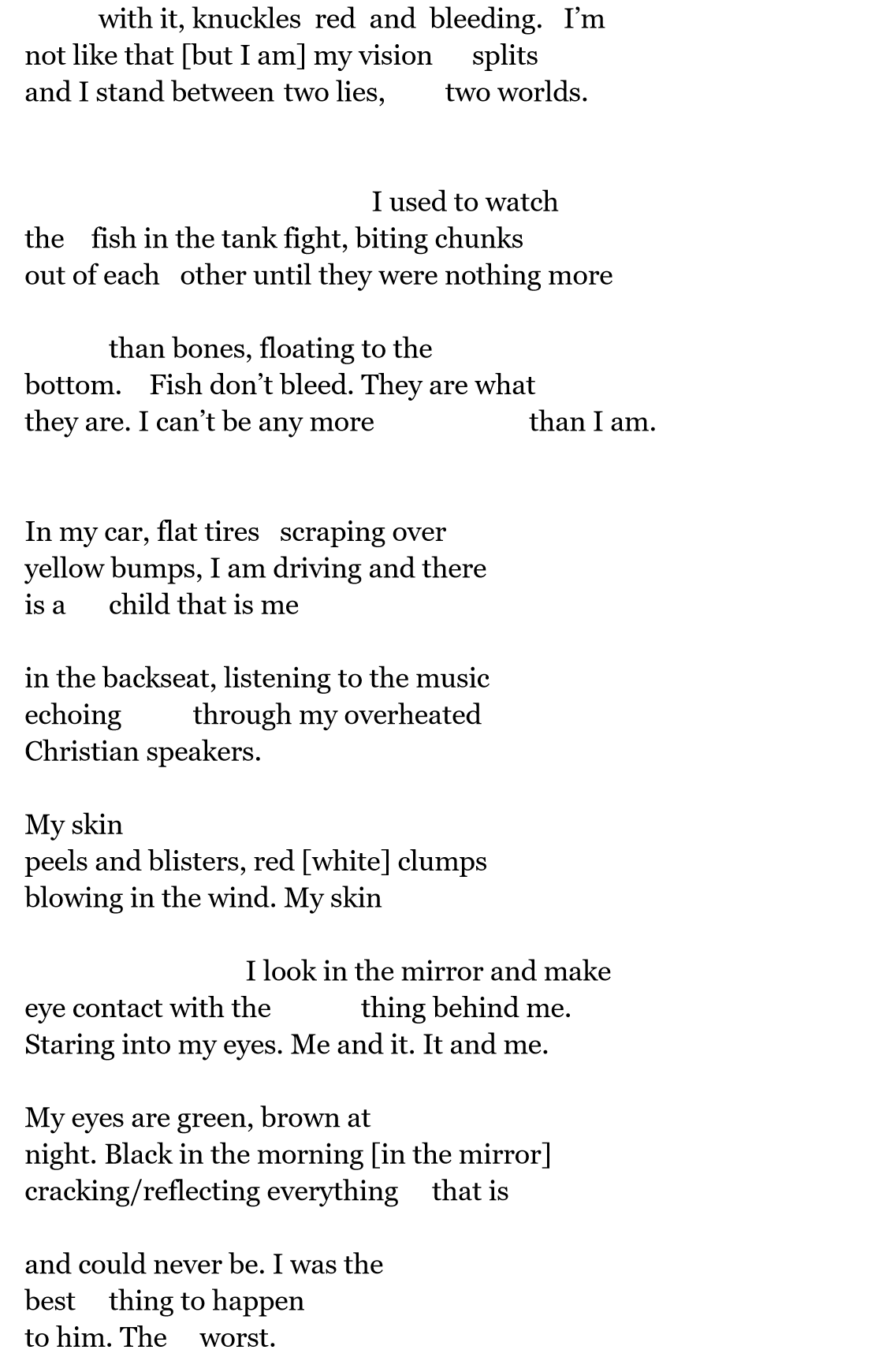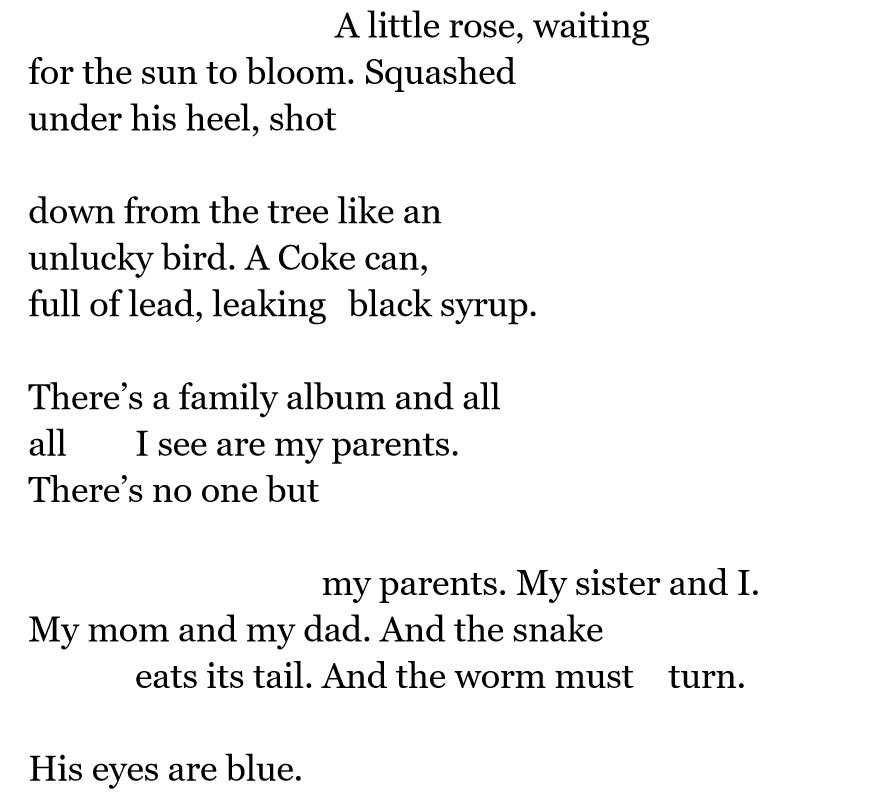 M.R. Wiard spends most of their time drinking apple cider and watching terrible television shows. Their work has been published in Paper Gardens and Main Squeeze. They are currently a student at Southern Oregon University.